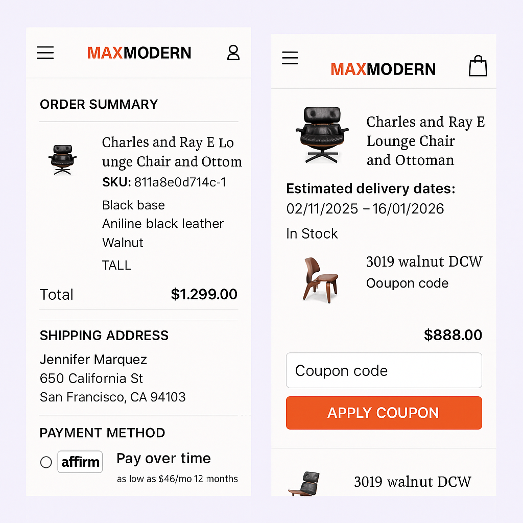 That’s why we offer flexible financing through Affirm — giving you the freedom to bring home timeless, high-quality furniture today and pay over time, with no hidden fees or surprises.Here’s why customers love using Affirm at Maxmodern: