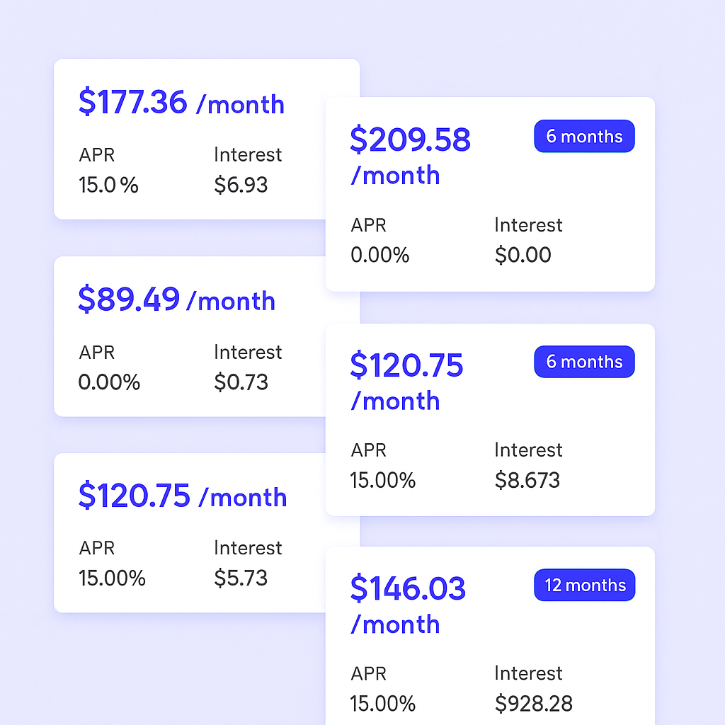 Get 0% APR financing for 3, 6, and 12 months on orders under $2,000 with Affirm