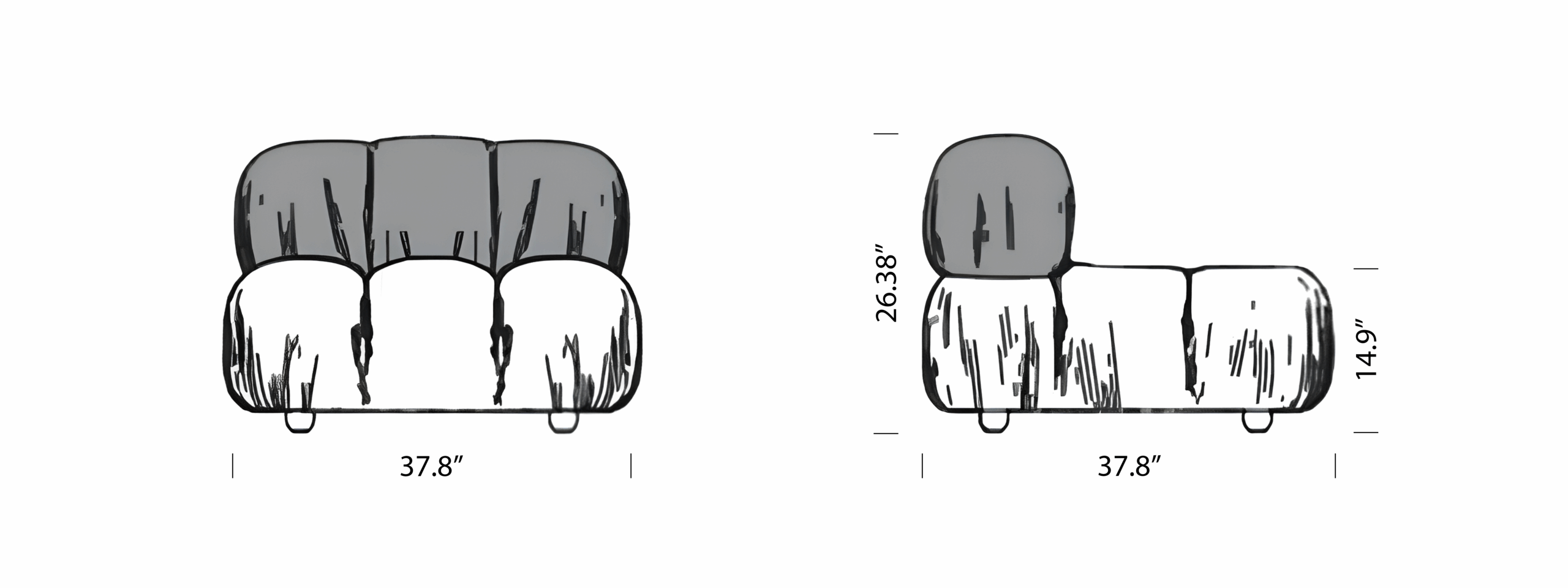 Sofa Measurement: 38 W x 38 D x 26 H inches / 96 W x 96 D x 67 H cm