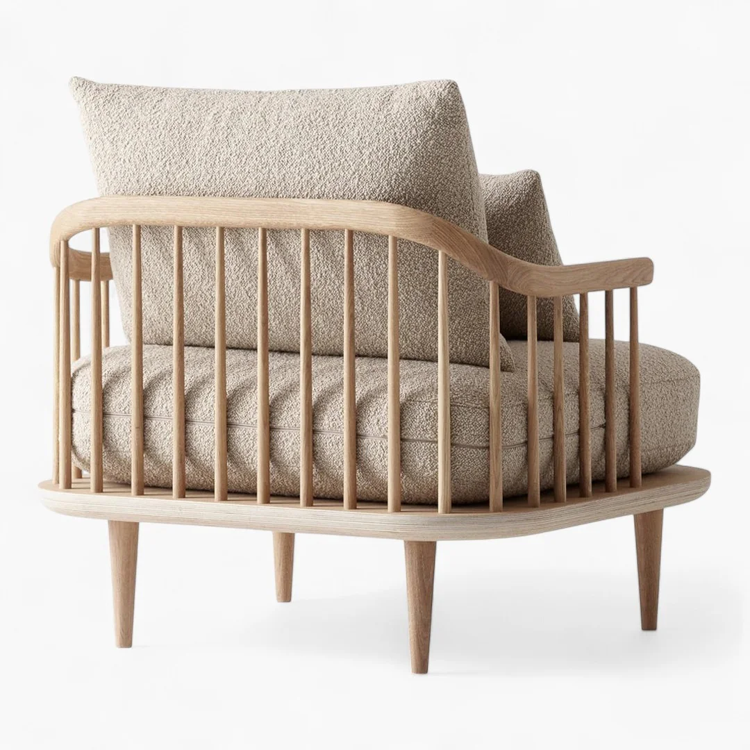 - Bouclé fabric upholstery by Kvadrat™, known for its rich texture, exceptional durability, and refined appearance.