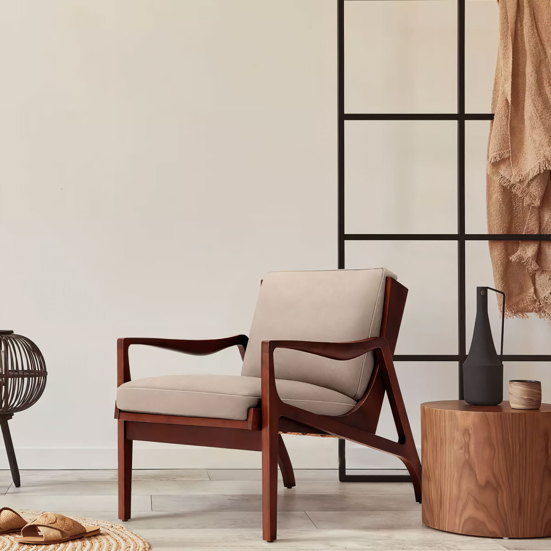 - Solid wood frame with slightly curved back legs for stability and visual intrigue.